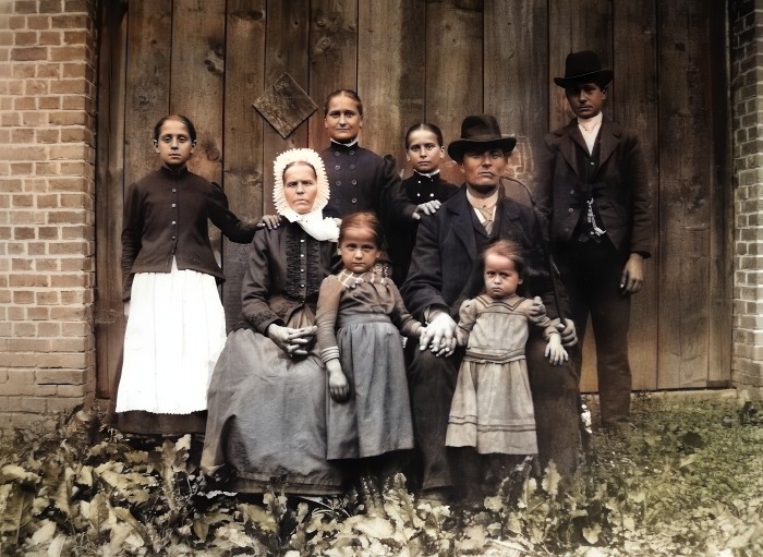 Poniżej próbki cyfrowej rekonstrukcji fotografii przedstawiających dawnych mieszkańców Jankowic, wykonanej w oparciu o techniki rekonstrukcji wizualnej i sztuczną inteligencję .